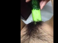 Horney Chinese student shape cucumber as cock and fuck herse