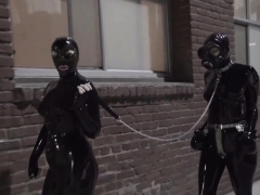 Latex babes Aradia and Krissy engage in lesbian BDSM outdoor
