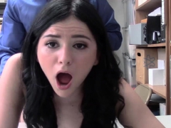 Brunette shoplifter sucks officers cock for freedom
