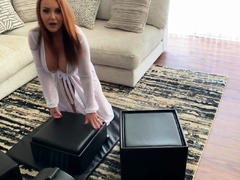 Amateur redhead masturbates then gives a blowjob